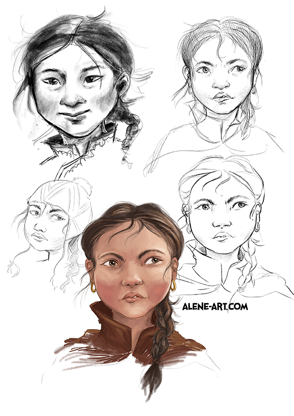 The next step was pinning down the characters. I spent the most time on Sunaya, and after that Praseep just fell into place: